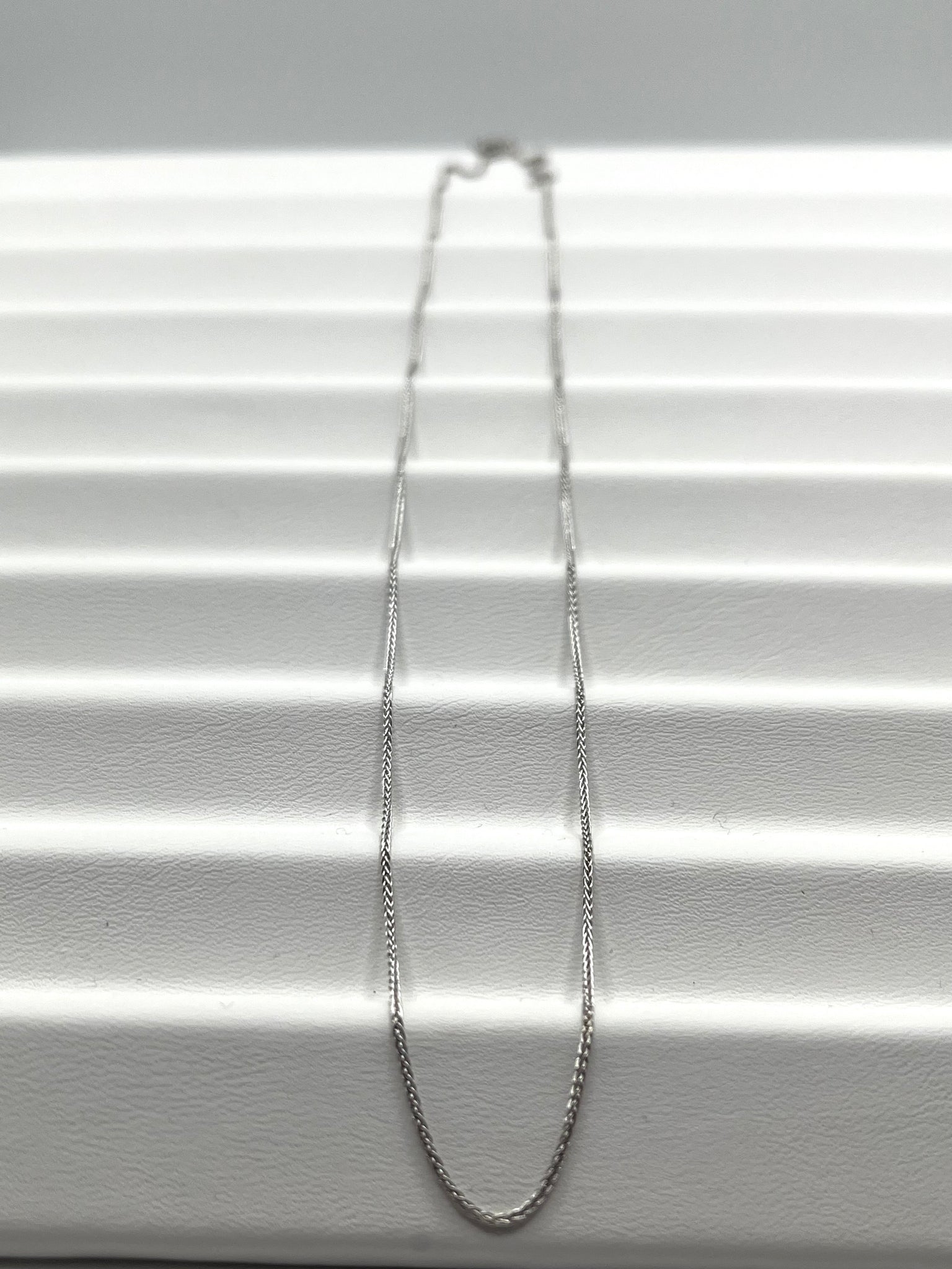 Have a white gold pendant you would like to showcase ? Here is your chance to get a stunning chain to go with it. Crafted with expert precision, this 10K Wheat chain showcases a timeless design in 10K white gold. This stylist wheat link chain is perfect for adding a touch of elegance to any outfit. Made with quality materials and expert craftsmanship, this chain is a must-have for any jewelry collection.