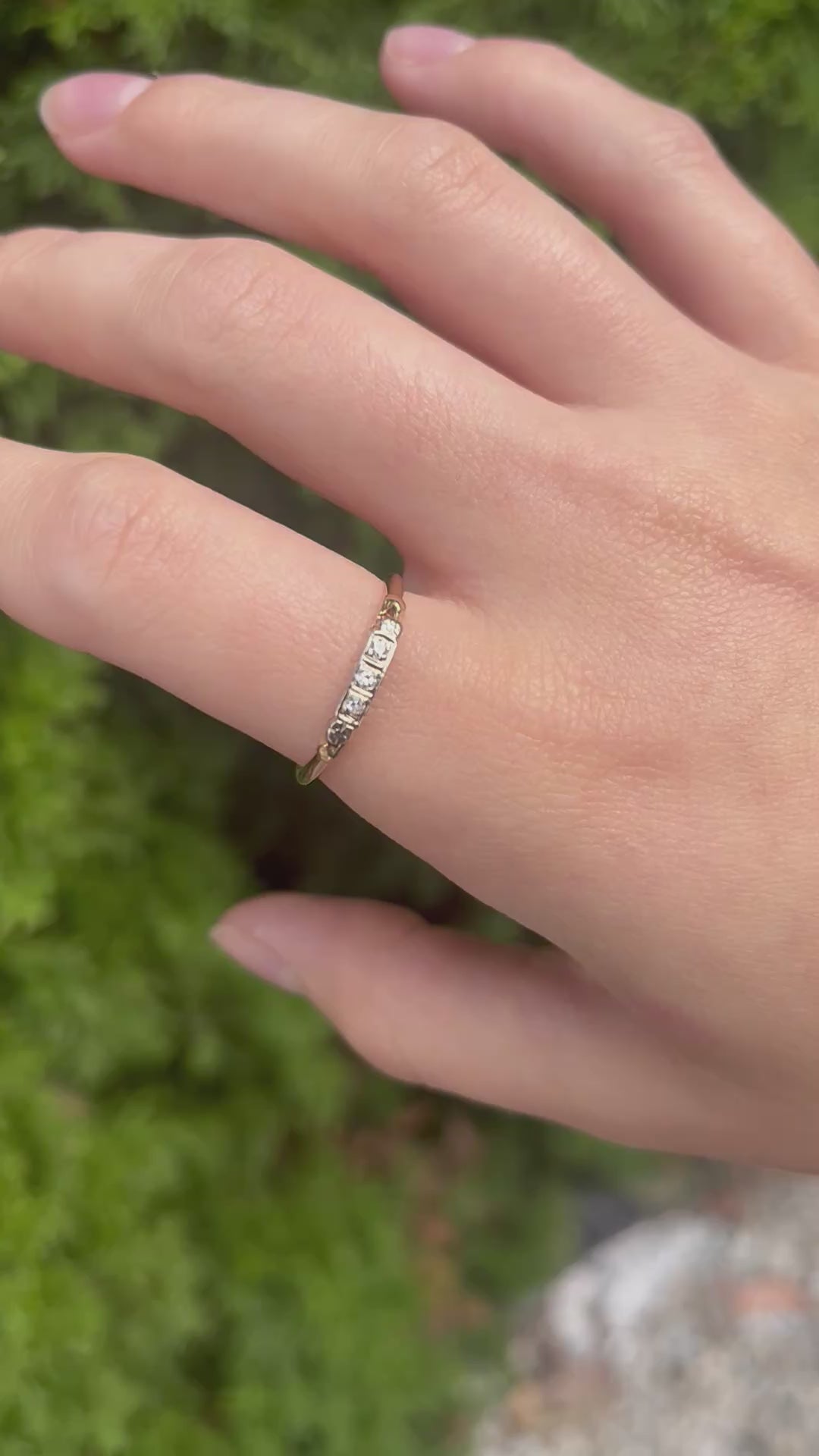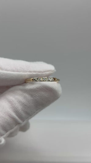 This 14K vintage diamond ring is a stunning addition to any jewelry collection. Crafted from high-quality 14k yellow gold, this vintage band features three sparkling diamonds for a touch of elegance and sophistication. With its delicate design and timeless appeal, this ring is sure to make a statement for any occasion.