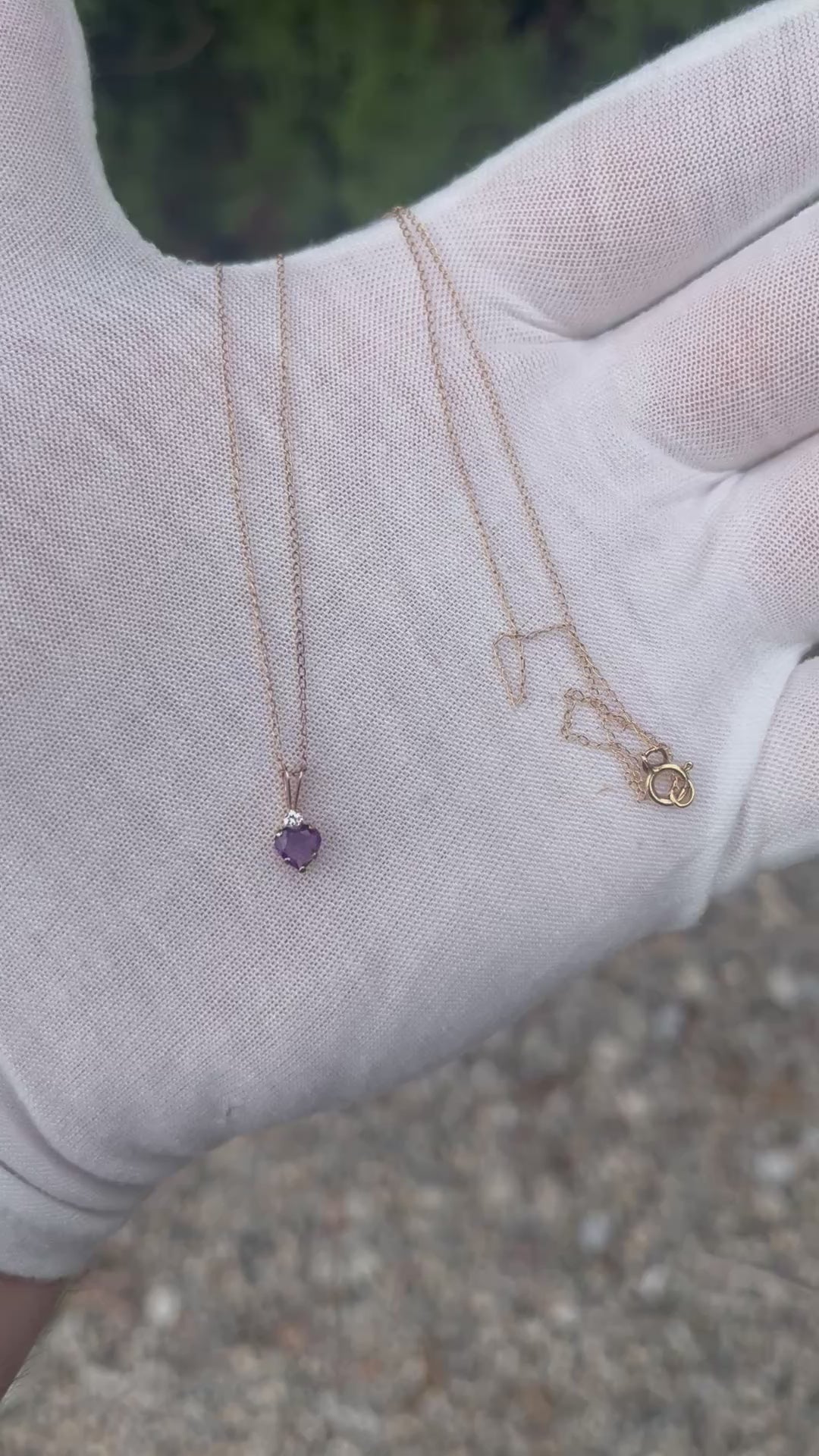 Crafted by expert jewellers, this 10K gold necklace boasts a beautiful heart-shaped Amethyst set, radiating elegance and sophistication. The perfect statement piece for any occasion, this necklace is sure to elevate any outfit and make you stand out from the crowd. Perfect for the pisces in your life.
